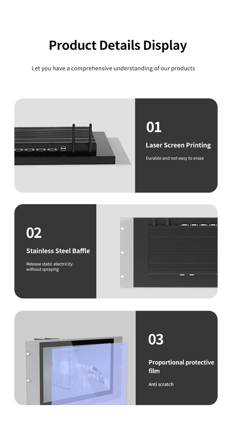 The open-frame industrial panel PC is designed without an external enclosure, making it ideal for embedded installation in customized equipment or kiosks. It is available in a wide range of sizes, offering flexibility to fit diverse application environments. With support for both functional and structural customization, this solution can be tailored to meet the specific requirements of various industries.