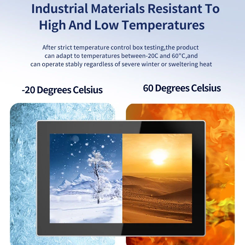 Our industrial panel PCs are engineered to perform in the most demanding conditions. Designed with wide temperature tolerance, they operate reliably in both extreme heat and freezing cold, making them ideal for outdoor, factory, or heavy-duty applications. The IP65-rated front panel ensures excellent waterproof and dustproof protection, safeguarding internal components from environmental hazards.