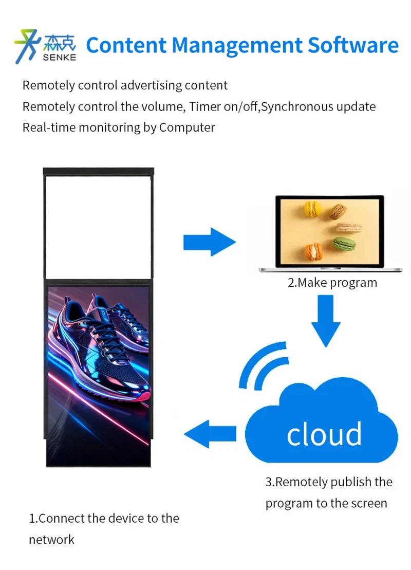 Supports images, videos, slideshows, animations, and remote content updates through cloud management.